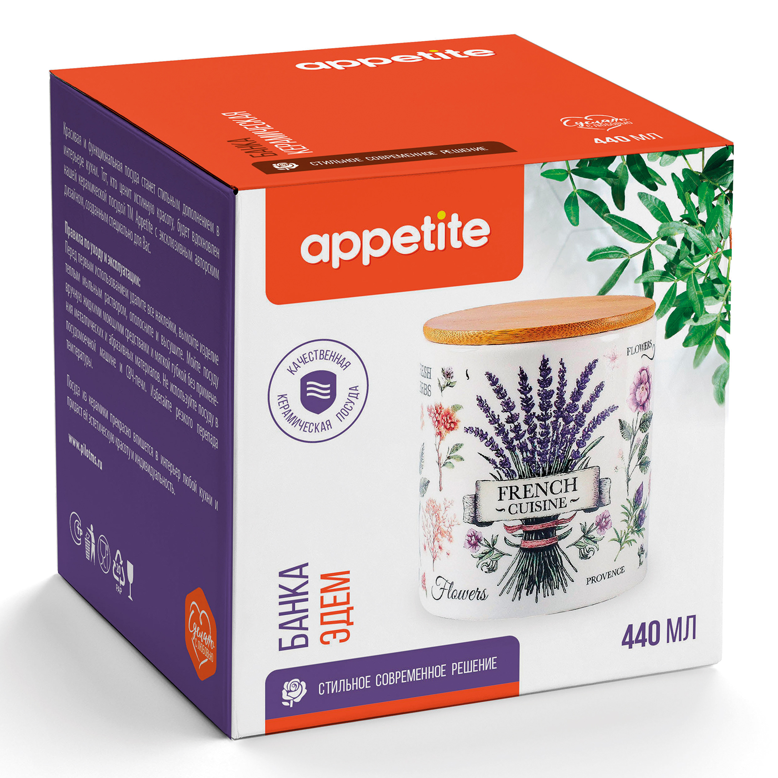 Банка керам круглая 440мл с бамбуковой крышкой Эдем ТМ Appetite оптом