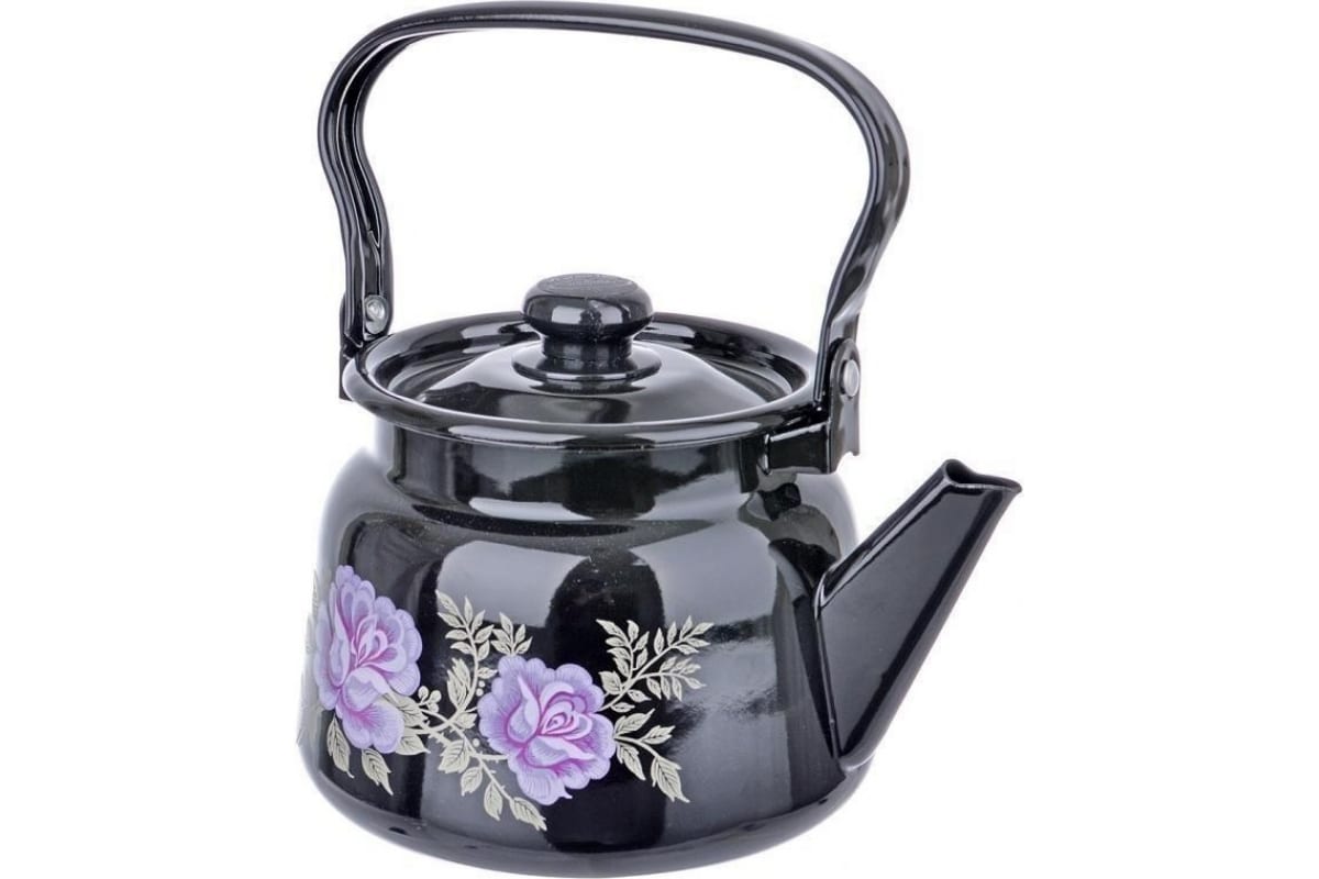 Эмалированный чайник Сибирские товары С2714.36 2.3 л с рисунком, черный ТБ2597 предназначен для нагрева воды.