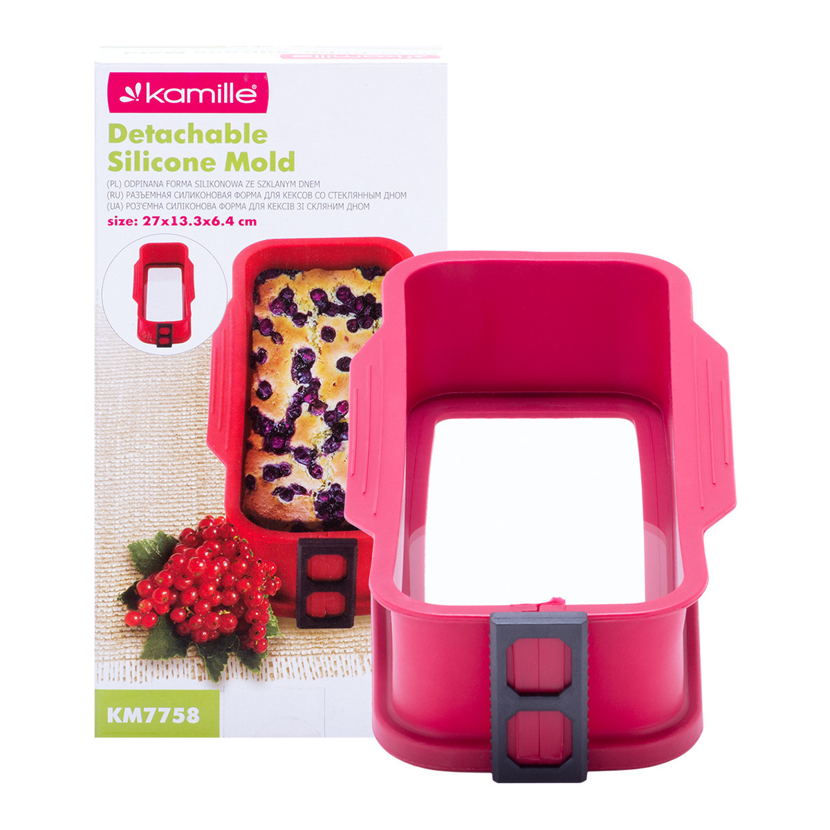Форма для выпечки Kamille KM-7758 силиконовая прямоугольная, разъемная, со стеклянным дном