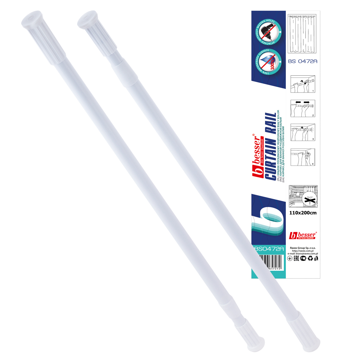 Карниз для ванной телескопический 110-200 см. Besser BS 0472A (белый) оптом