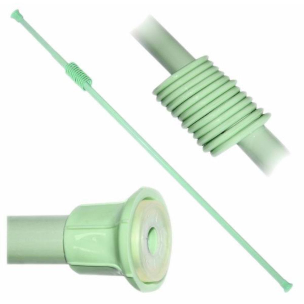 Карниз для шторки в ванную комнату с раздвижным телескопическим механизмом для регулировки длины. Конструкция представляет собой две трубки, вставленные одна в другую. Внутри карниза скрывается специальный механизм с пружиной, отвечающий за фиксацию трубок относительно друг друга в выбранном положении. Силиконовые вставки по краям карниза предотвратят его скольжение по стенам. В комплект поставки входят 12 пластиковых колец для крепления шторки к карнизу.