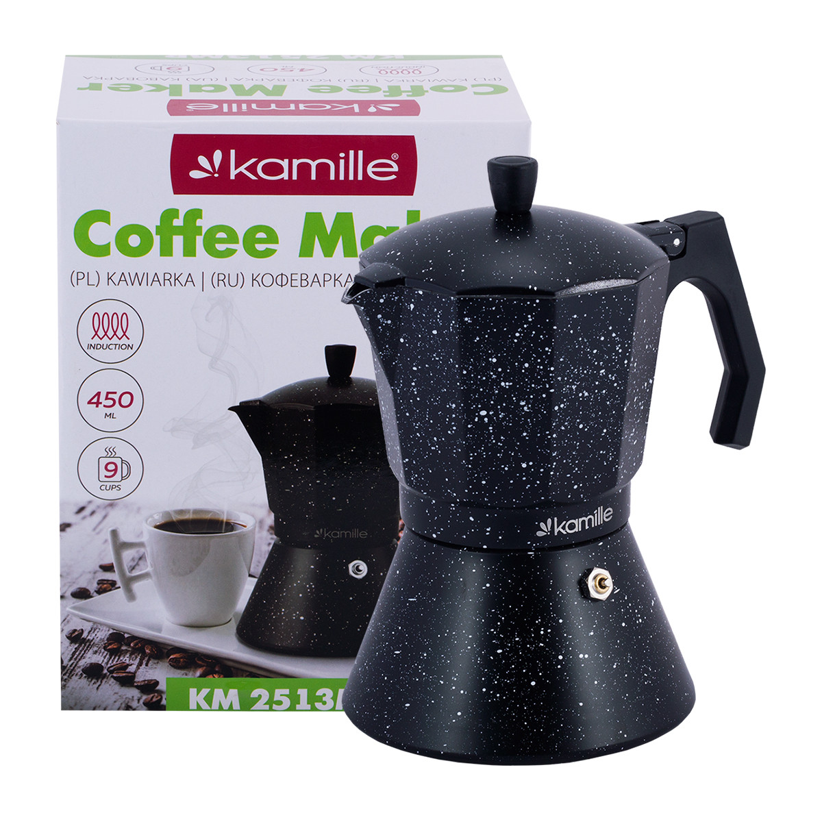 Кофеварка гейзерная 450 мл. (9 порций) из алюминия с индукционным дном Kamille КМ-2513MR (черный мрамор) оптом