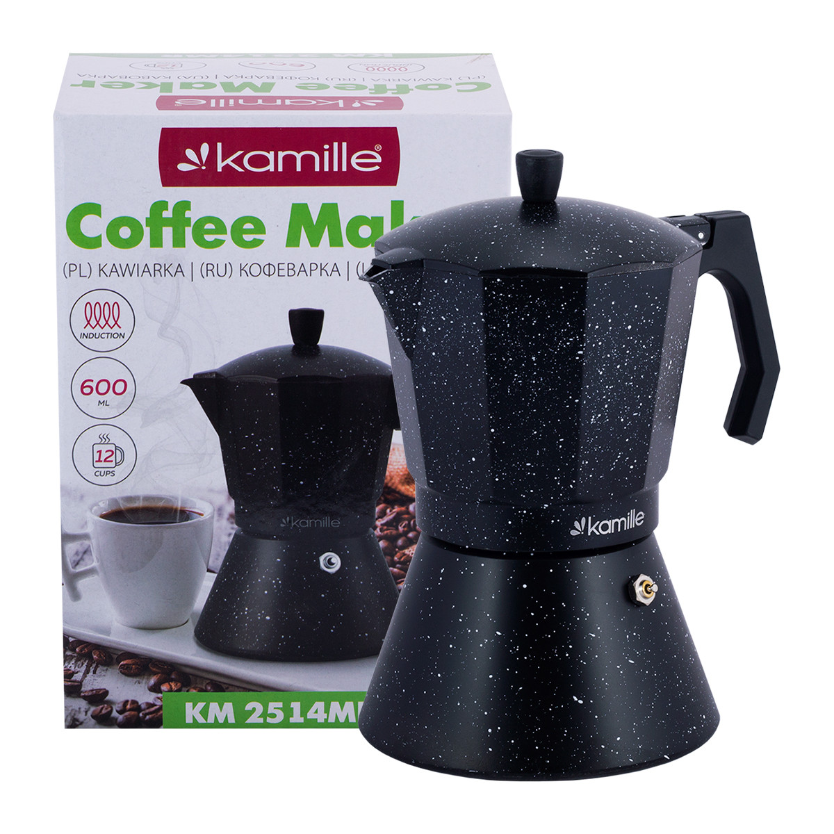 Кофеварка гейзерная 600 мл. (12 порций) из алюминия с индукционным дном Kamille КМ-2514MR (черный мрамор) оптом