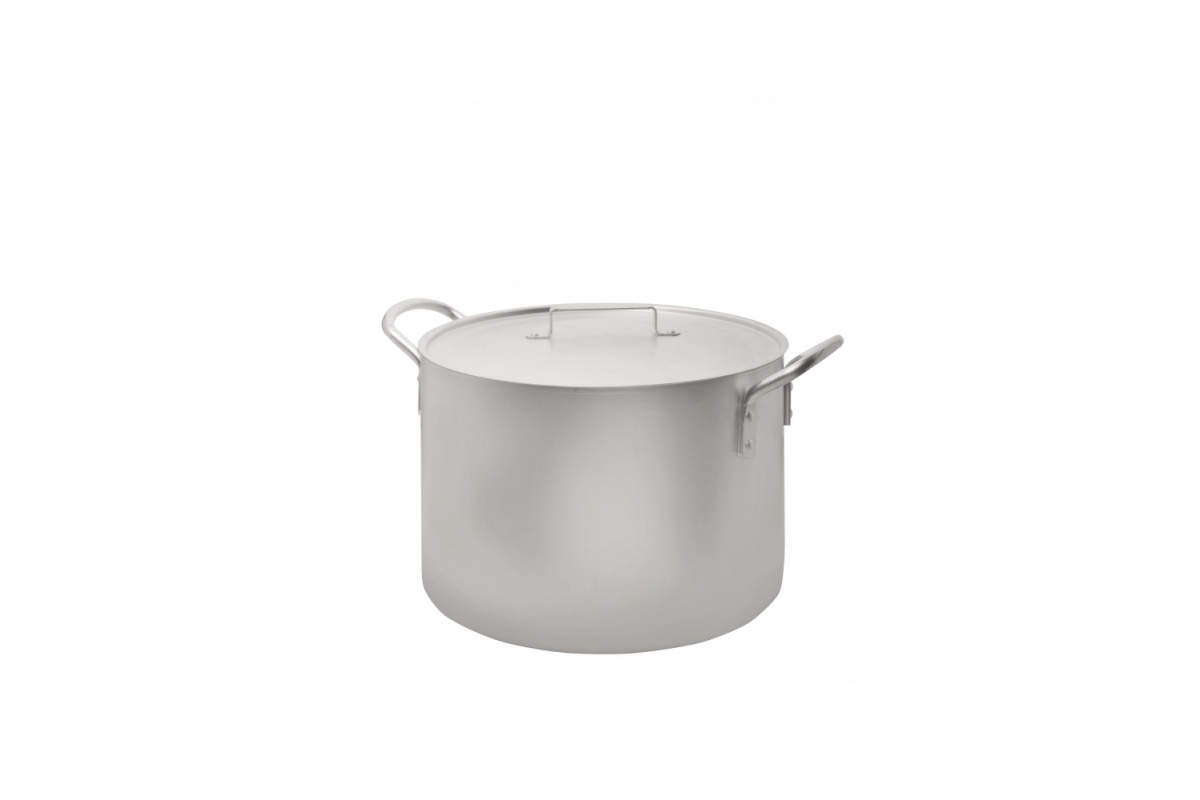 Изготовлен из прочного штампованного алюминия, устойчивого к температурному воздействию. Изделие оснащено металлическими ручками и идет в комплекте с металлической крышкой. Соответствует ГОСТ и отвечает всем санитарно-гигиеническим требованиям.