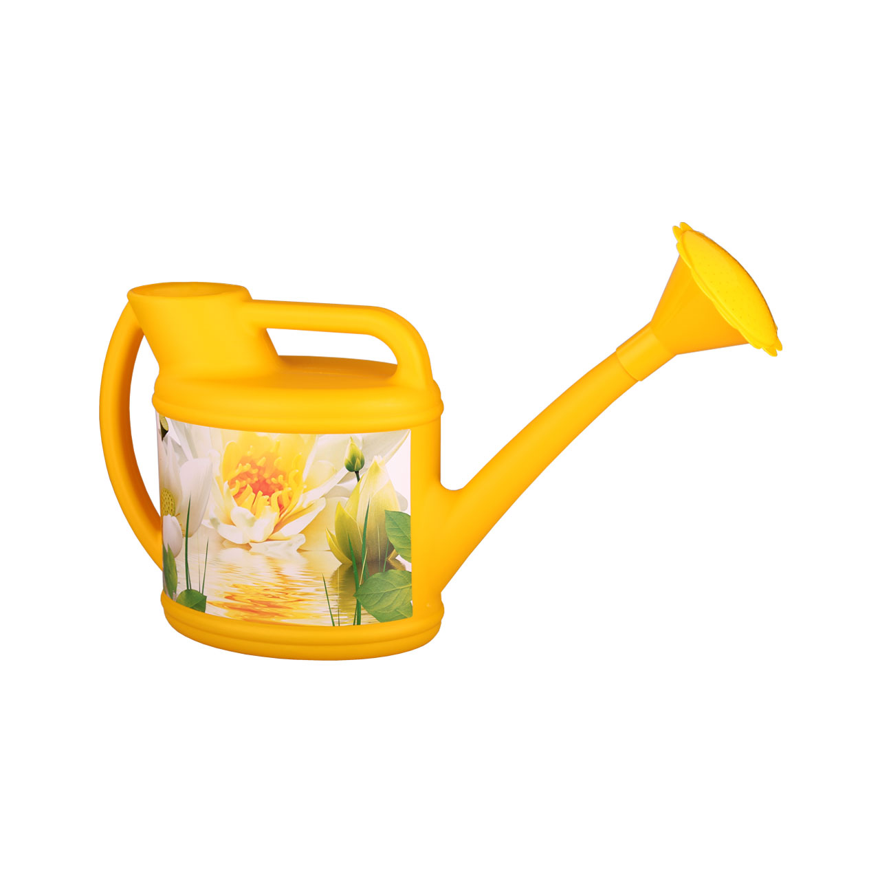 Лейка – один из главных помощников садовода. Изделие отличается удобной ручкой, длинным носиком и съёмным рассеивателем, позволяющим осуществлять равномерный капельный полив. На стенках изделия расположена цветочная аппликация.