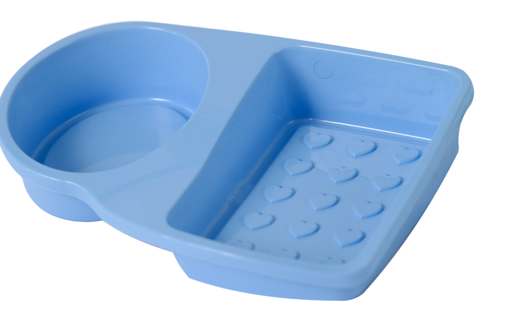 Мыльница состоит из двух секций, что позволяет использовать её не только для хранения мыла, но и как подставку для губки или моющего средства.