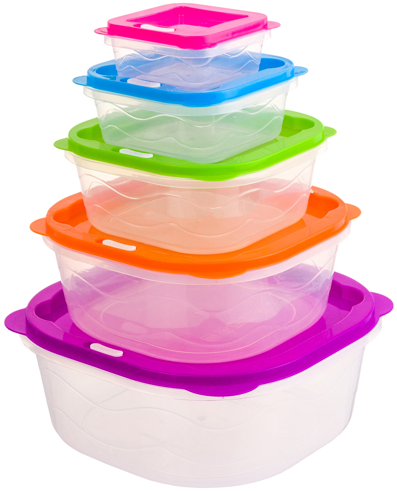 Набор из 5 пластмассовых контейнеров-салатников подойдет для организации хранения и транспортировки пищи. Крышки закрываются плотно и герметично. Имеют разные цветные крышки и хорошо смотрятся вместе. Подходят для использования в микроволновой печи. Контейнеры выполнены из безопасного пищевого пластика. Подходит для самых различных целей благодаря разным объемам. При хранении пустыми друг в друге занимают совсем мало места.