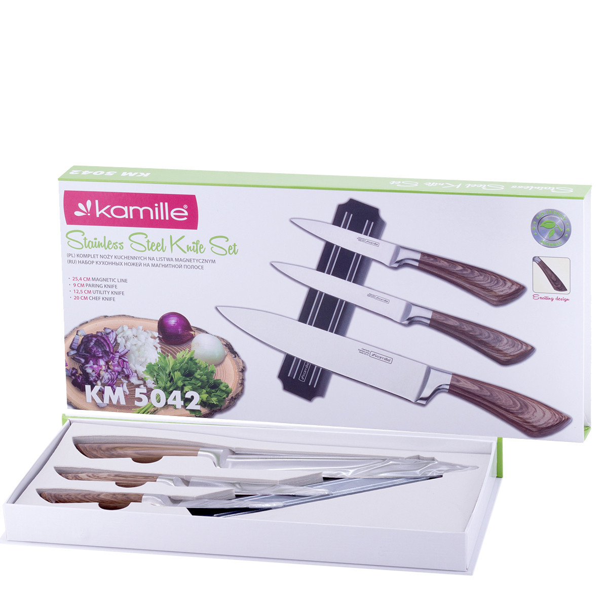 Набор кухонных ножей на магнитной полоске Kamille KM-5042