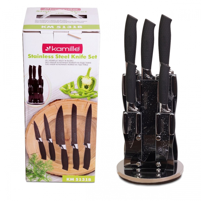 Набор ножей 6 предметов из нержавеющей стали на акриловой подставке Kamille KM-5131B