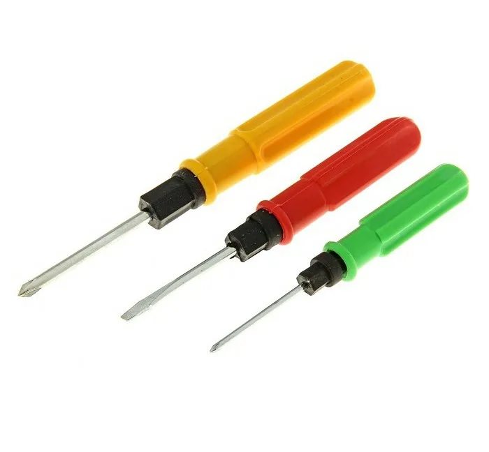 Отвертка 2-х сторонняя: плоская и крестовая. Длина: 12см. Материал: металл, пластик. Производитель: Китай.