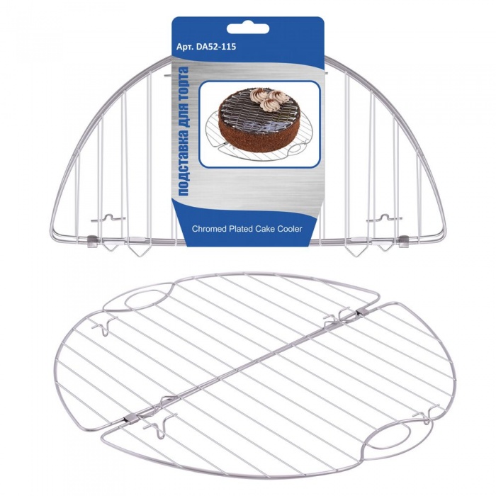 Подставка для торта очень популярна в среде профессиональных и домашних кондитеров. Используется для охлаждения бисквитов, кексов, маффинов, печенья и других кондитерских изделий после выпечки. Кроме того, ее можно использовать для глазирования выпечки помадкой, глазурью, шоколадом. Подставка поможет избежать образования конденсата, сохранив при этом пышность и воздушность торта. Проста в использовании: смажьте небольшим количеством сливочного масла, выложите торт или пирог и оставьте до полного остывания. После применения рекомендуется промыть подставку в проточной воде, можно с жидкими моющими средствами. Допускается мытье в посудомоечной машине. Хранить в сухом месте. Изготовлено из стальной хромированной проволоки.