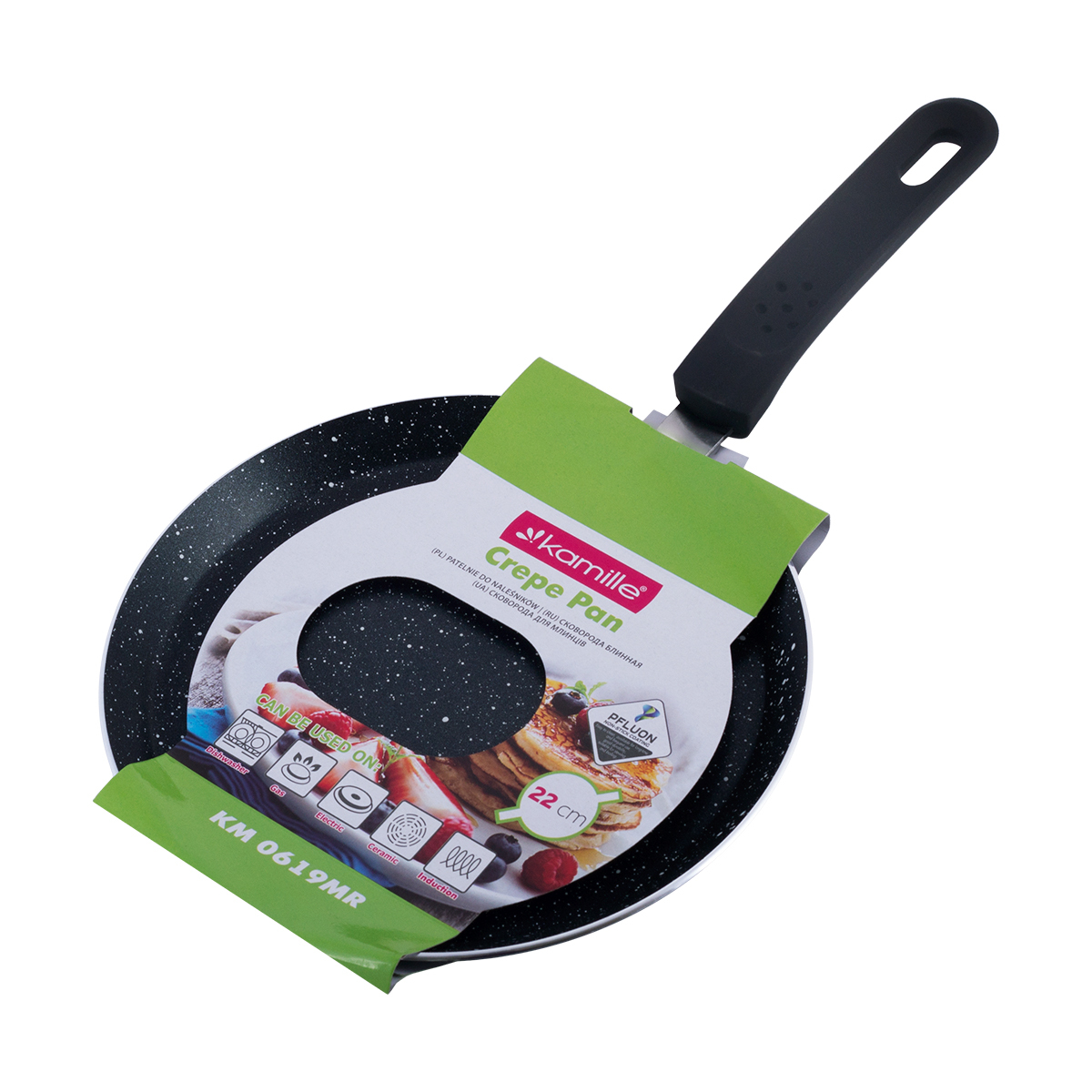 Сковорода блинная Ø22 см из алюминия с мраморным покрытием (индукция) Kamille KM-0619MR оптом