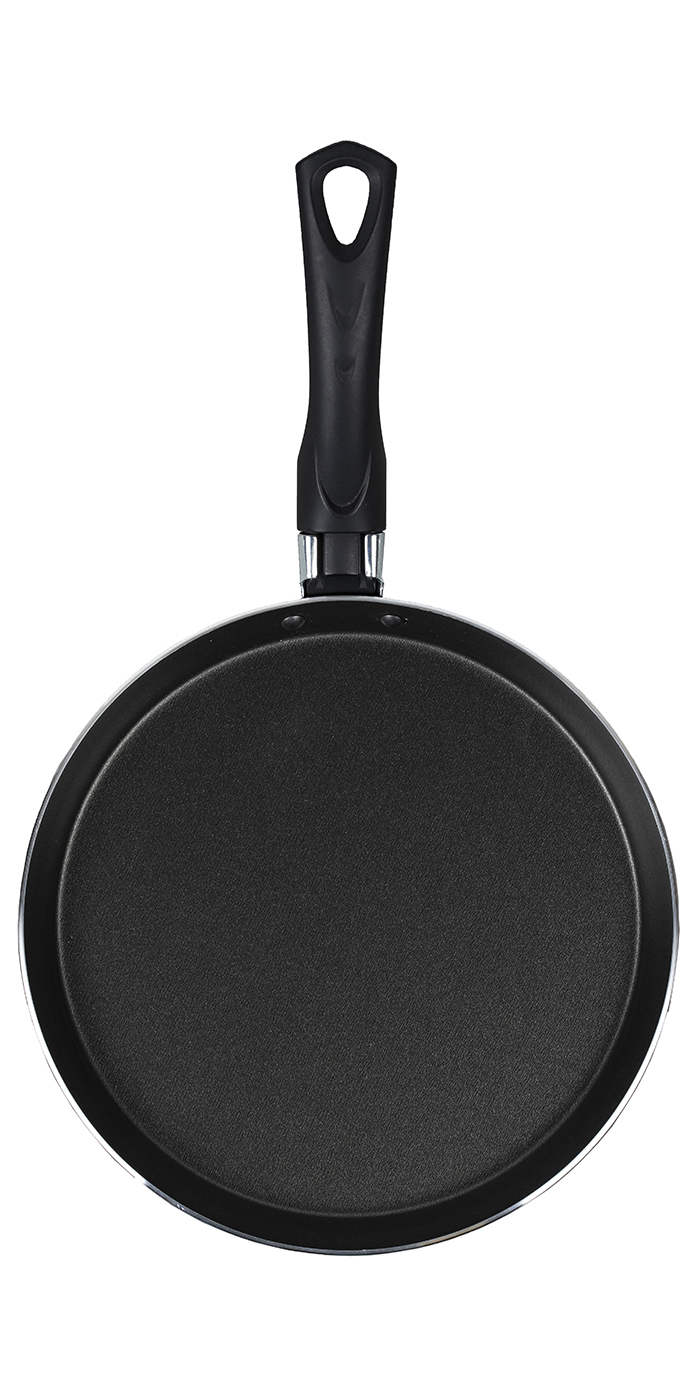Прочный алюминиевый корпус из штампованного металла быстро нагревается и равномерно обжаривает блинчики без пригорания и прилипания. Низкие бортики максимально облегчают процесс переворачивания: тесто получится ровным и аккуратным.