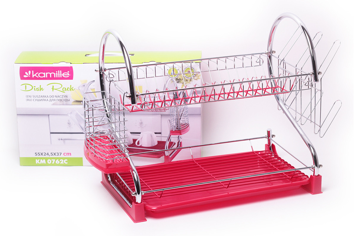 Сушилка для посуды двухъярусная 55х24,5х37 см. из хромированной стали с поддоном (красный) Kamille KM-0762C оптом