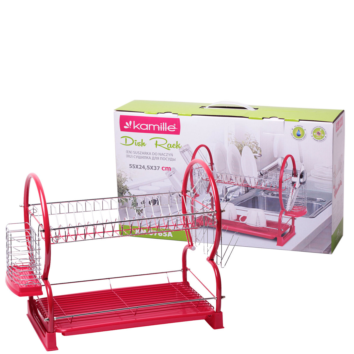 Сушилка для посуды двухъярусная 55х24,5х37 см (красная) Kamille KM-0765A оптом