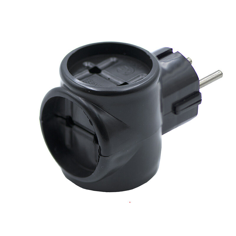 Тройник электрический черный "Евро" бочка 16А переходник 3 гнезда TOKER 3T 6А черный оптом