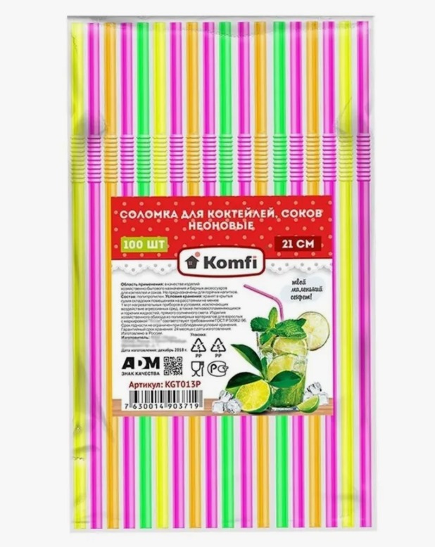 Трубочки для коктейлей и сока одноразовые неонового цвета. В упаковке 100 штук одноразовых трубочек для сока. Размер трубочек для напитков 5х210 мм. При изгибе гофра пластиковой трубочки для коктейля не деформируется, а если надо возвращается в исходное положение. Изготовлены одноразовые трубочки для напитков из высококачественного полипропилена, не имеют запаха, нетоксичные. Пластиковые трубочки для напитков подходят для взрослых и детей. Одноразовые трубочки для коктейля - удобный аксессуар. Трубочки для коктейлей и сока позволяют пить напиток малыми порциями и не спеша. Оригинальные барные трубочки